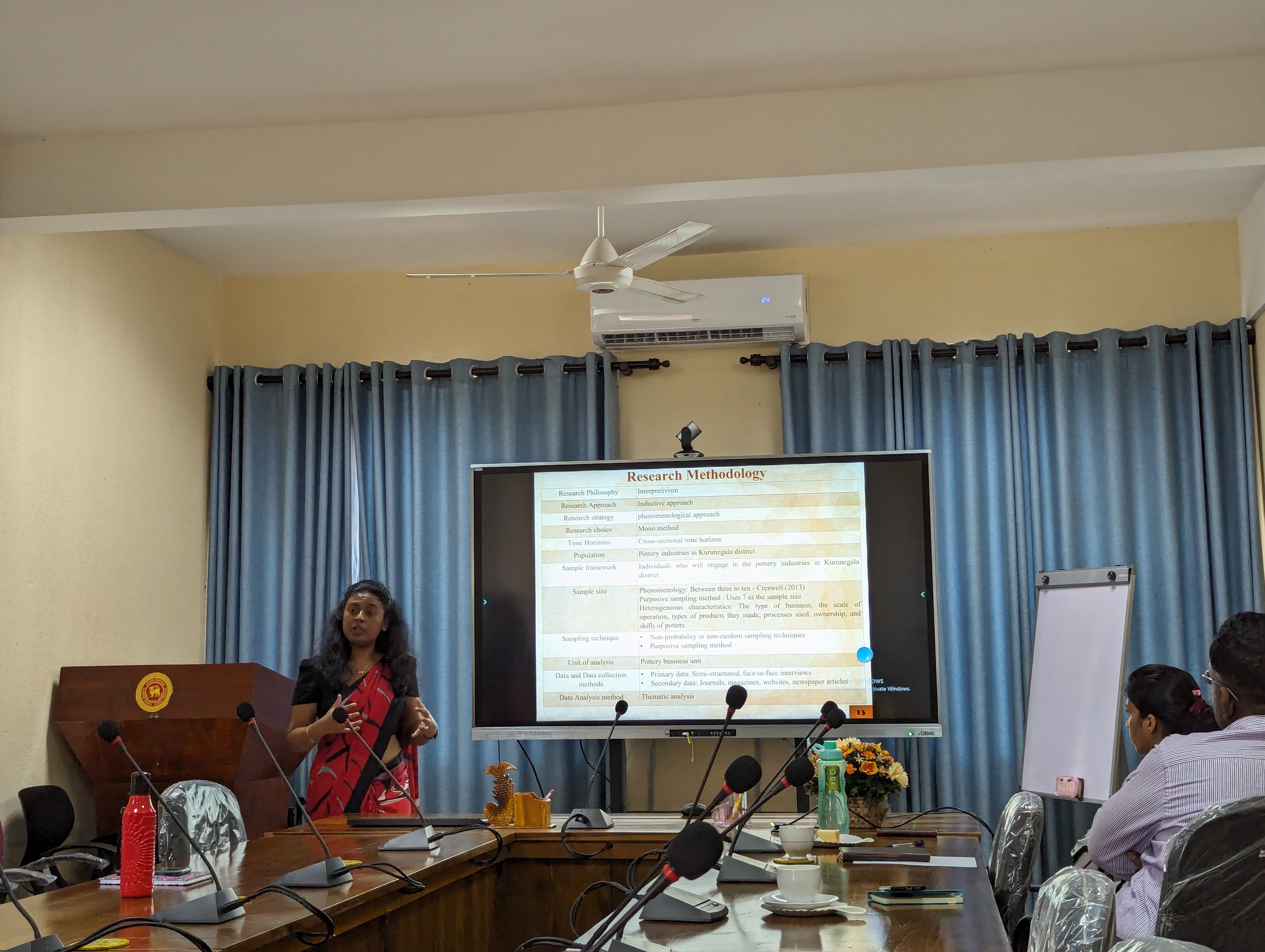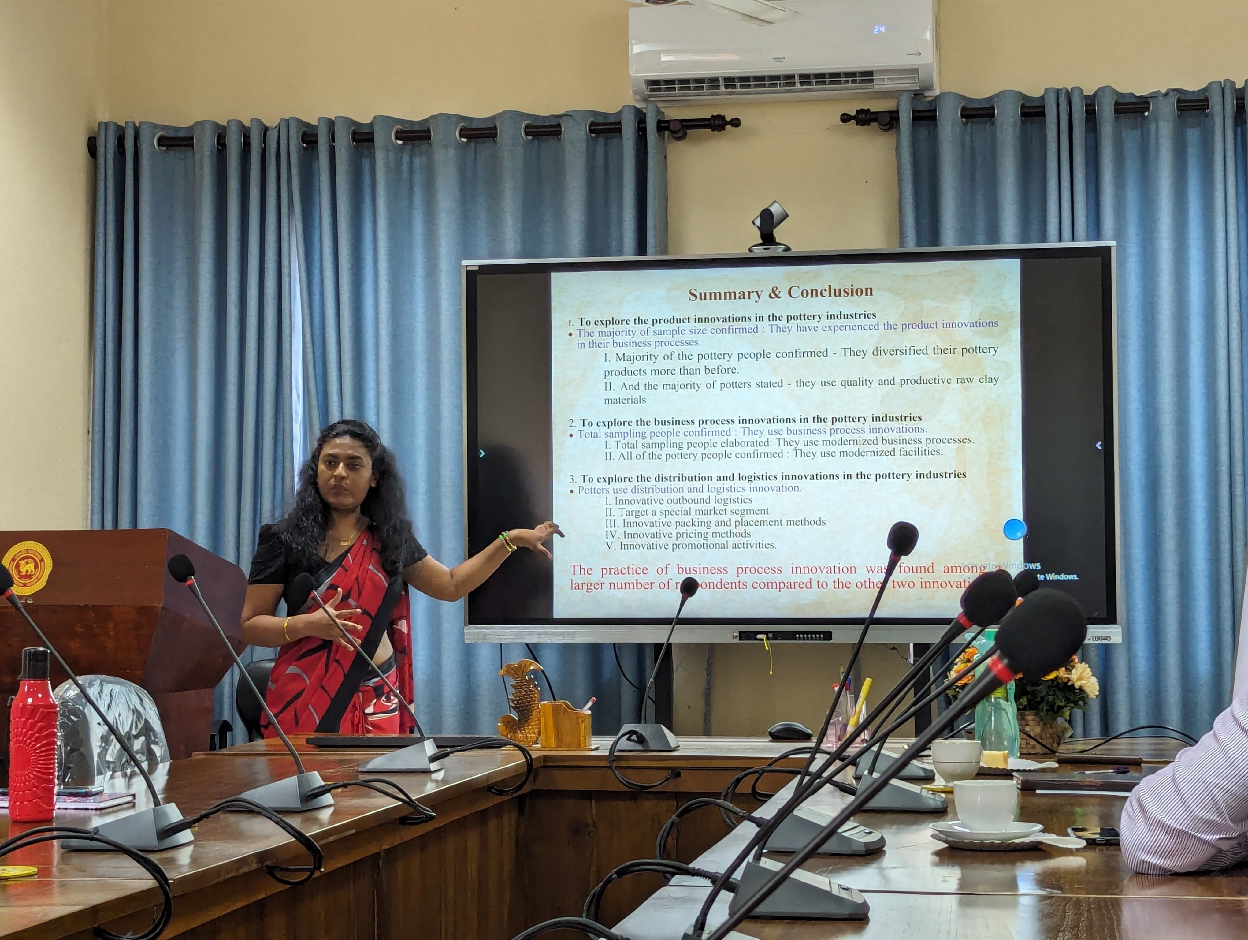 The 30th Department Seminar of the Department of Operations Management was held on the 11th of January 2023 from 10.00 a.m. to 11.00 a.m. in the Innovation Co-creation Cell of the Faculty of Management. The presentation was made by Ms. H. R. Dilka Anjani Priyantha on the title, “Exploring Innovation Capabilities of Pottery Industries in Kurunegala District”. The academic staff members of the Faculty of Management participated in this event.