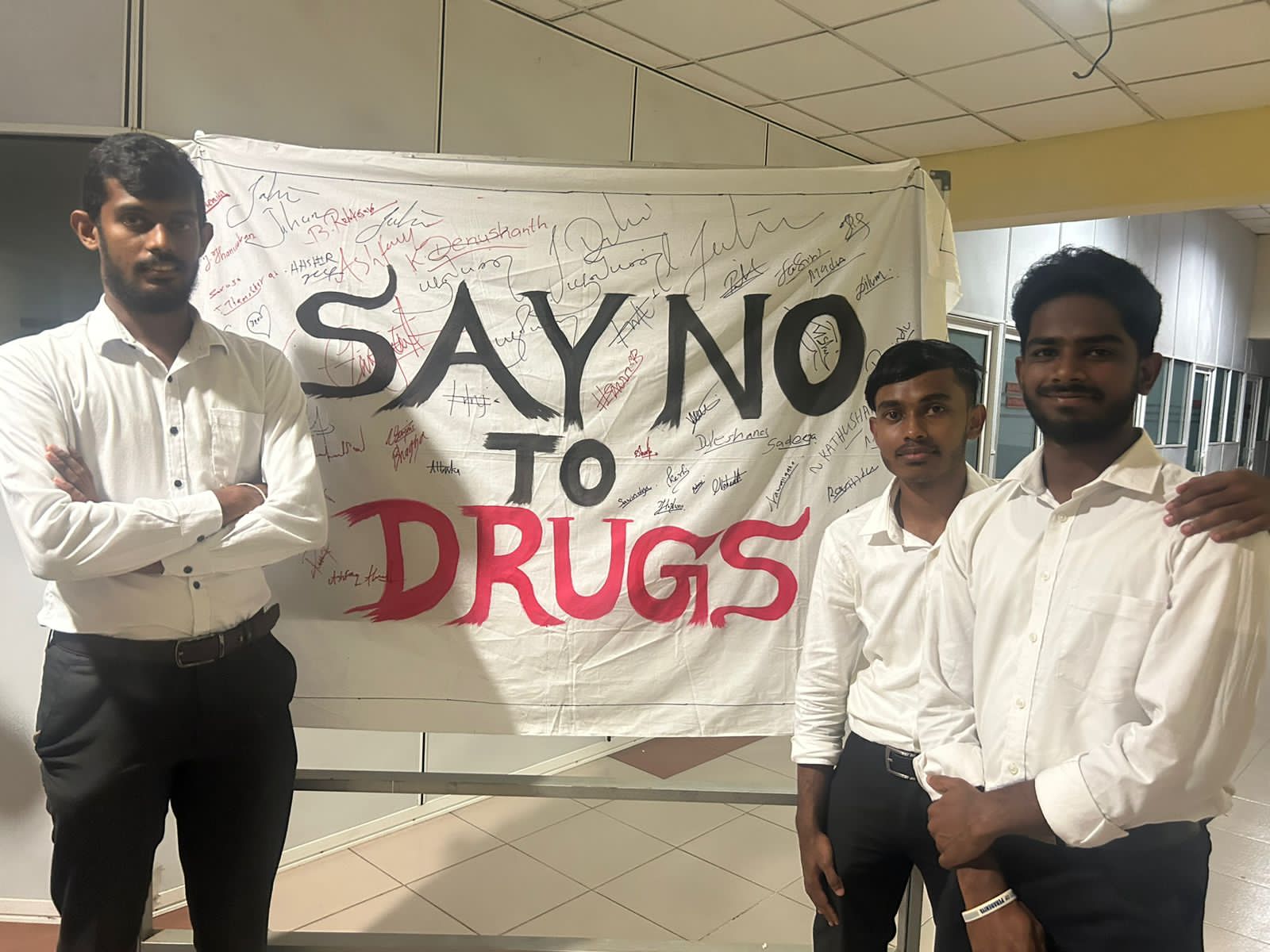 Two resource persons from Police Narcotic Bureau, Mr. N.M. Lakshman Edirimanna, Inspector of Police; Mr. V. Vijayaraj, Police Sergeant, were invited to facilitate the program. Students and academic staff attended the event, during which students engaged in a signature campaign promoting the theme “say no to drugs.” The occasion has significantly contributed to moulding graduates with a strong sense of social responsibility and fostering civic engagement.