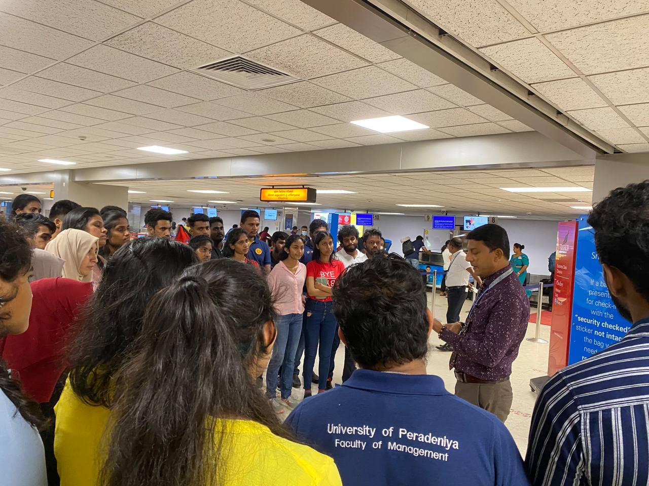 The 3000 Level and 4000 Level BBA undergraduates who are specializing in Marketing Management and the academic staff of the Department of Marketing Management, University of Peradeniya, went on a field visit to Bandaranaike International Airport (BIA) on the 14th of June 2023. The aim of the field visit was to provide exposure to a practical set-up with respect to marketing discipline so that the students will be able to grasp the taste of real marketing applications. Specifically, this hands-on experience allowed the students to witness the practical application of marketing theories in the aviation industry.