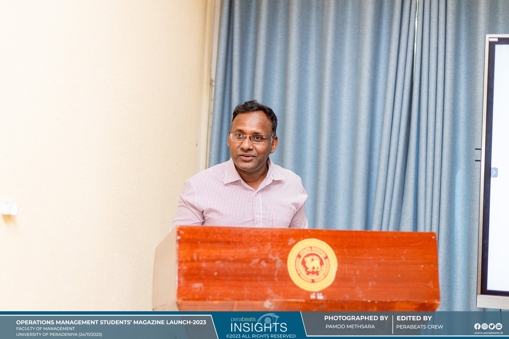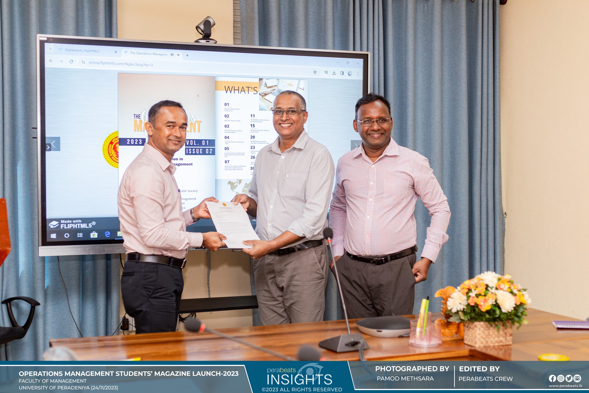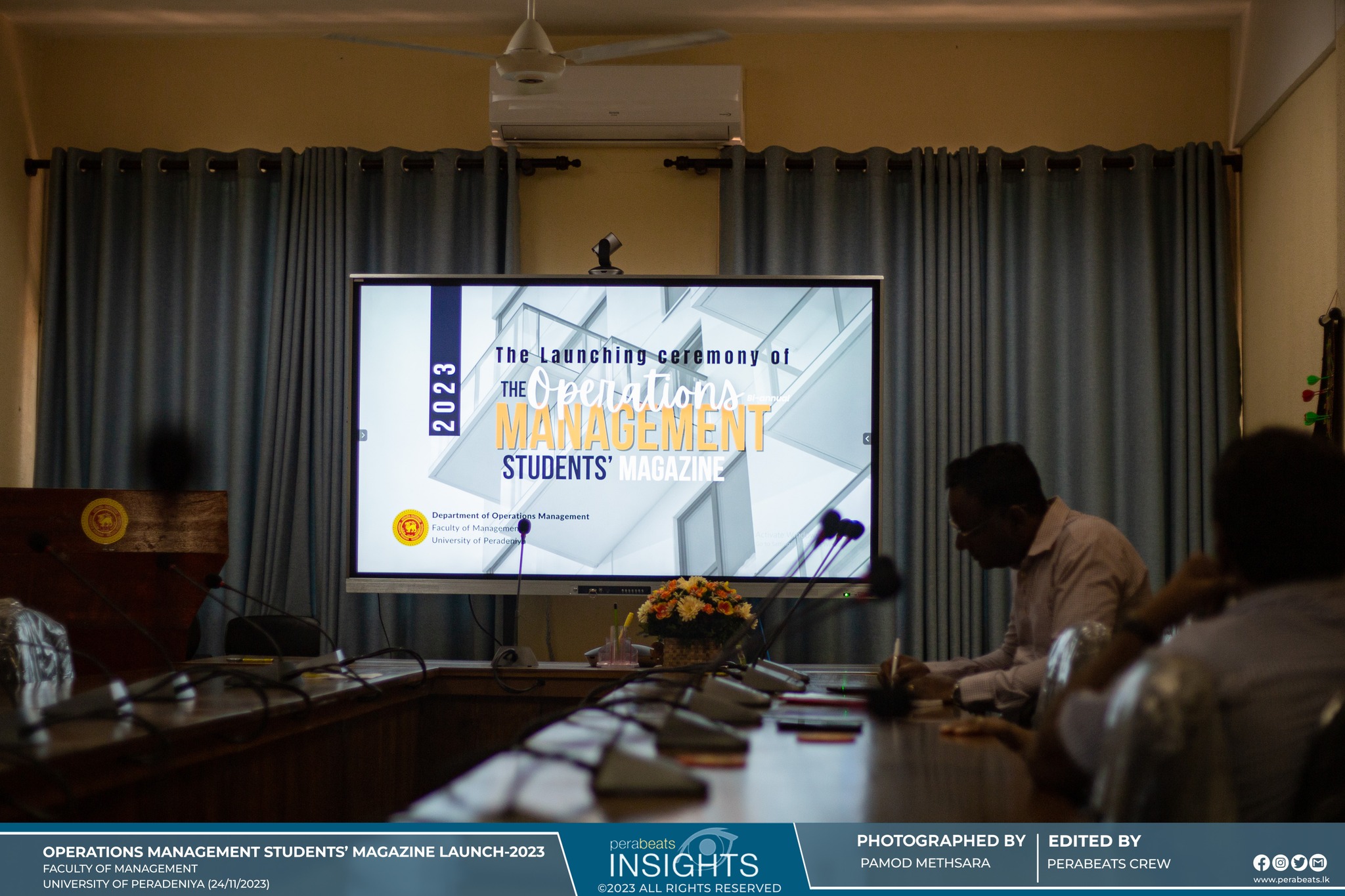 The Operations Management Students’ Society launched the second issue of “The Operations Management Students’ Magazine” the bi-annual students’ e-magazine on the 24th of November, 2023 at the Innovation and Co-Creation Cell, Faculty of Management. The event was graced by Prof. Ravi Kuruppuge, Dean, Faculty of Management as the chief guest, followed by all heads of departments. Ms. Reema Zulfiqar, the Editor-in-Chief and Ms Sujani Dissanayake, the Managing Editor of “The Operations Management Students’ Magazine” officially launched the E-Magazine in the presence of Prof Ravi Kuruppuge, Dean, Faculty of Management, University of Peradeniya and Dr S. Maheshwaran, Head, Department of Operations Management, Faculty of Management, University of Peradeniya.