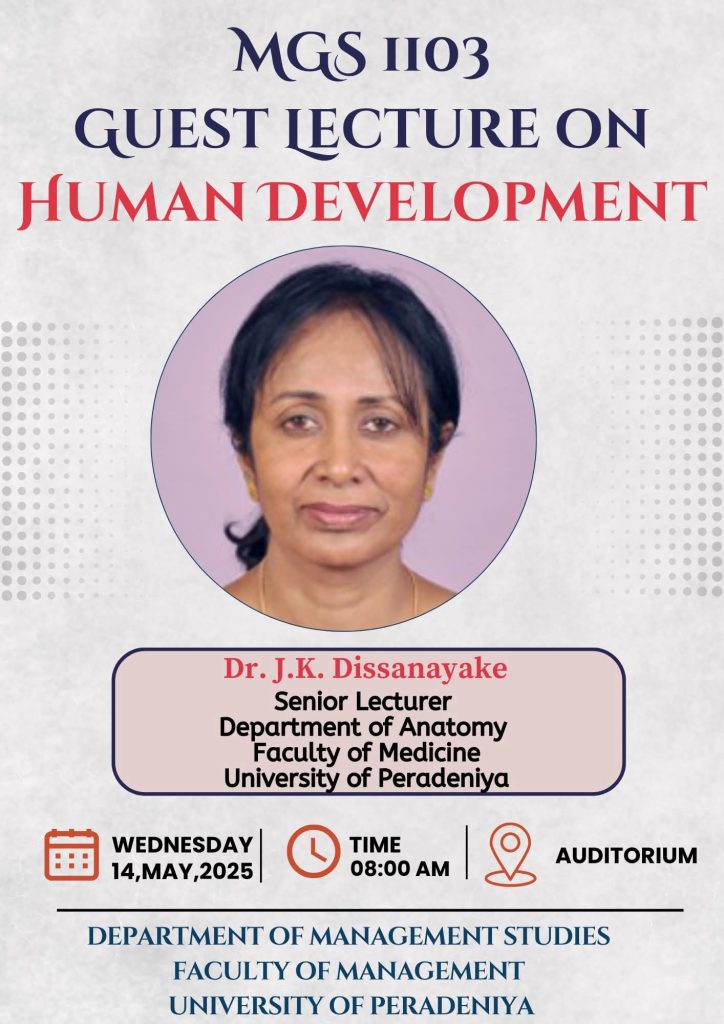 The Department of Management Studies successfully conducted a guest lecture on the timely and significant topic “Social Issues”, as a part of the course MGS 1103 – Basics of Social Sciences for first-year undergraduates. The session took place on Monday, 02nd of June 2025, from 10.00 am to 12.00 noon, at the Faculty Auditorium. The […]